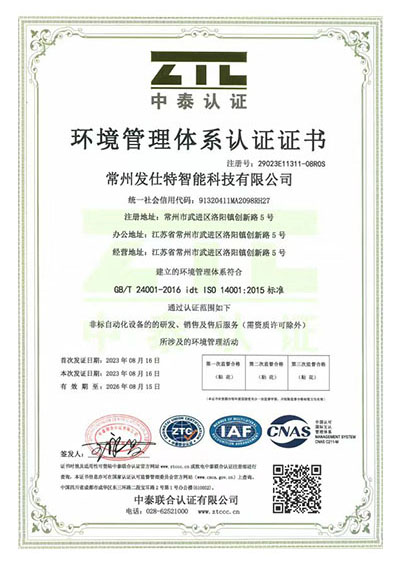 環(huán)境管理體系認證證書